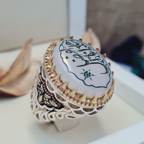 انگشتر مردانه عقیق نباتی اصلی حکاکی یا اباالفضل