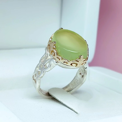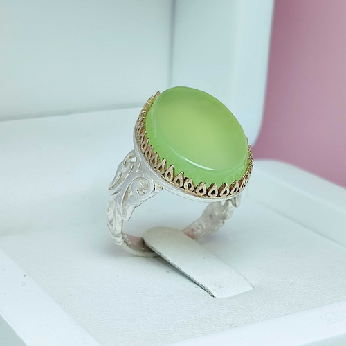 انگشتر خاص مردانه عقیق سبز کاهویی خوش رنگ