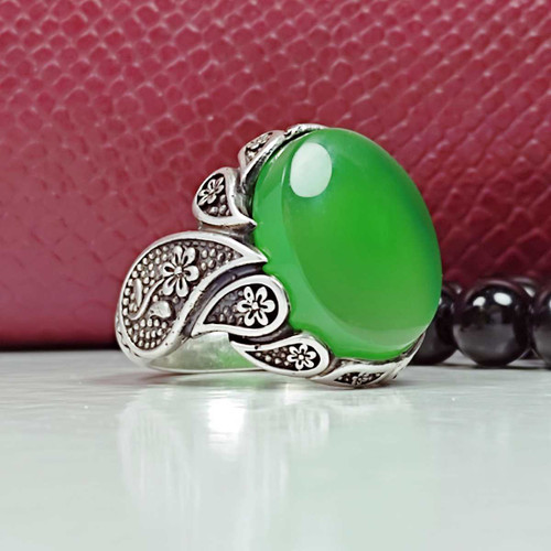 انگشتر عقیق سبز رنگ رکاب طرح گل