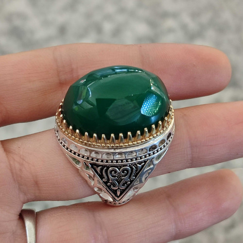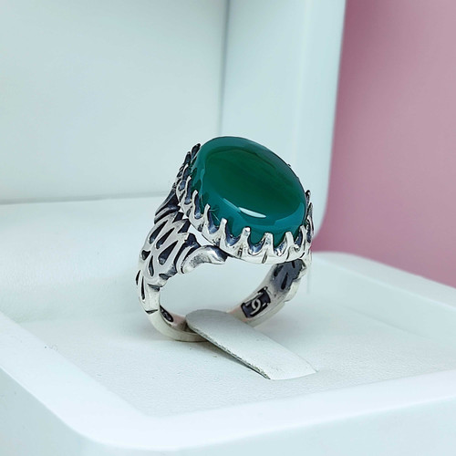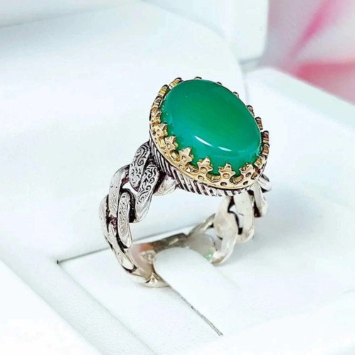 انگشتر خاص مردانه عقیق سبز (کد 1192)