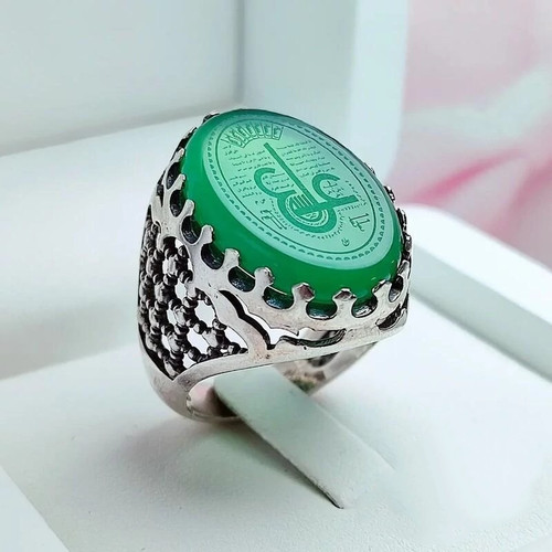 حکاکی یاحسین انگشتر مردانه نقره عقیق سبز