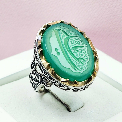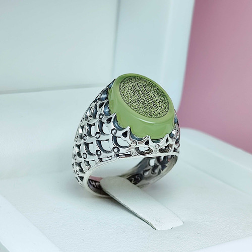 انگشتر یس مردانه عقیق سبز حکاکی لیزر