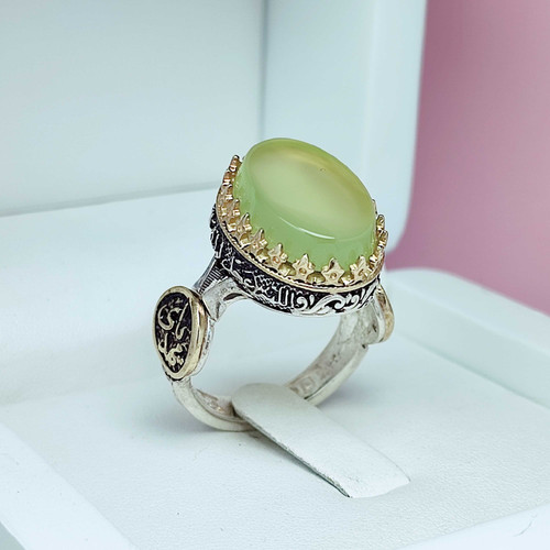 انگشتر مذهبی یاعلی یازهرا مردانه عقیق سبز خوشرنگ