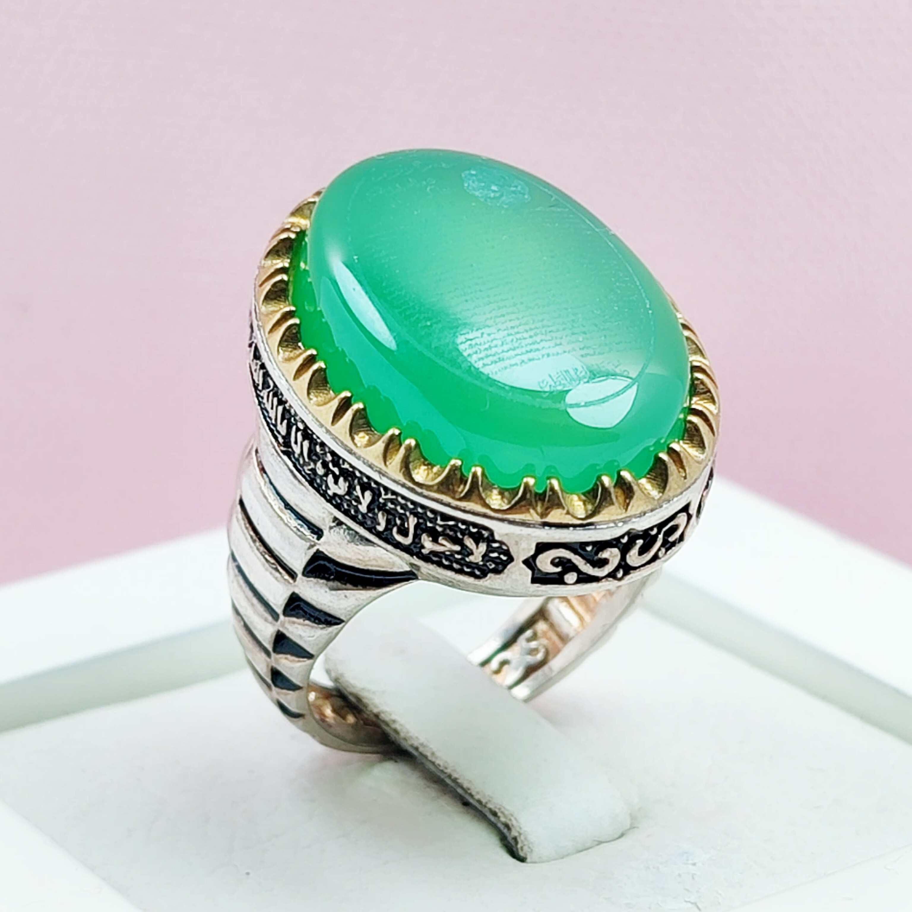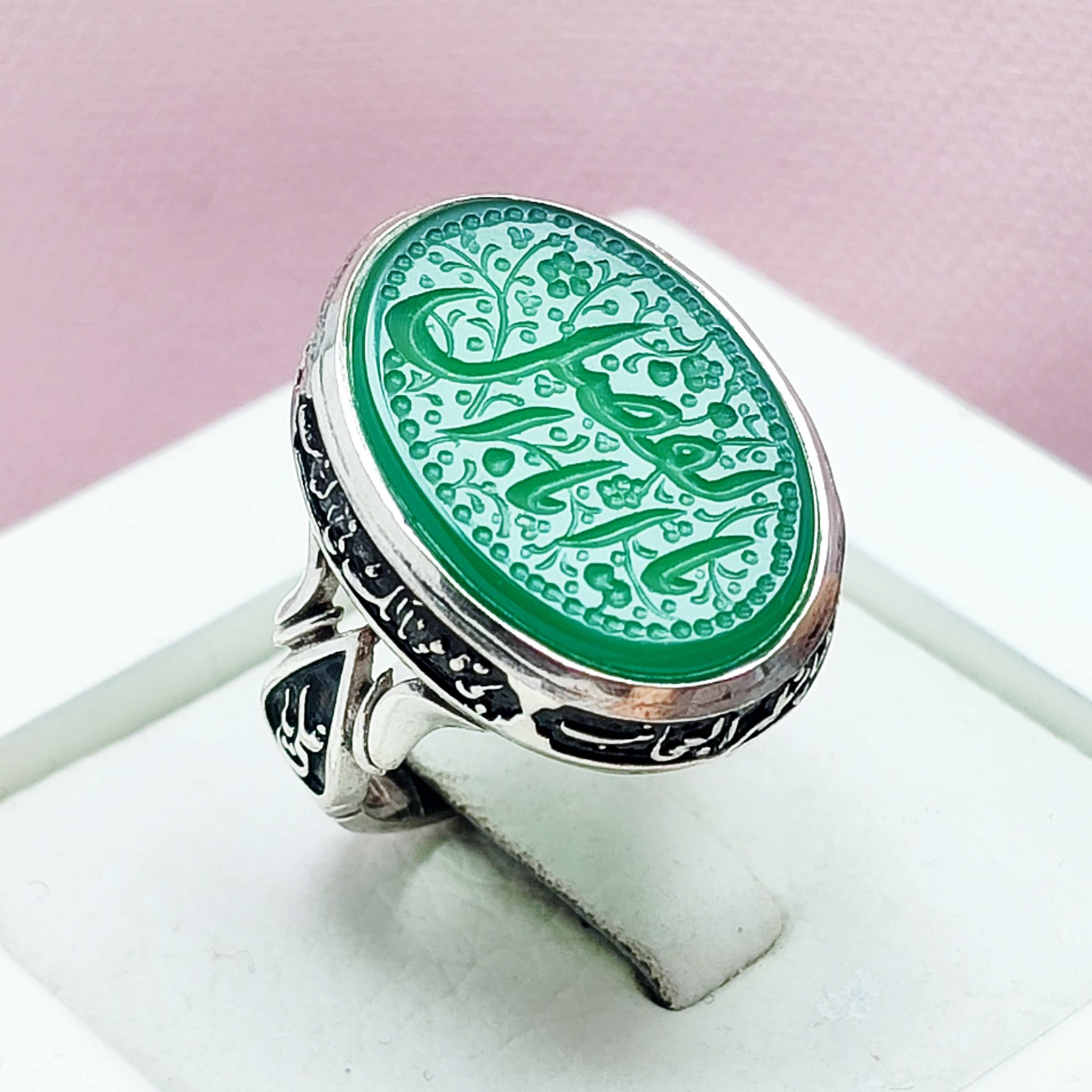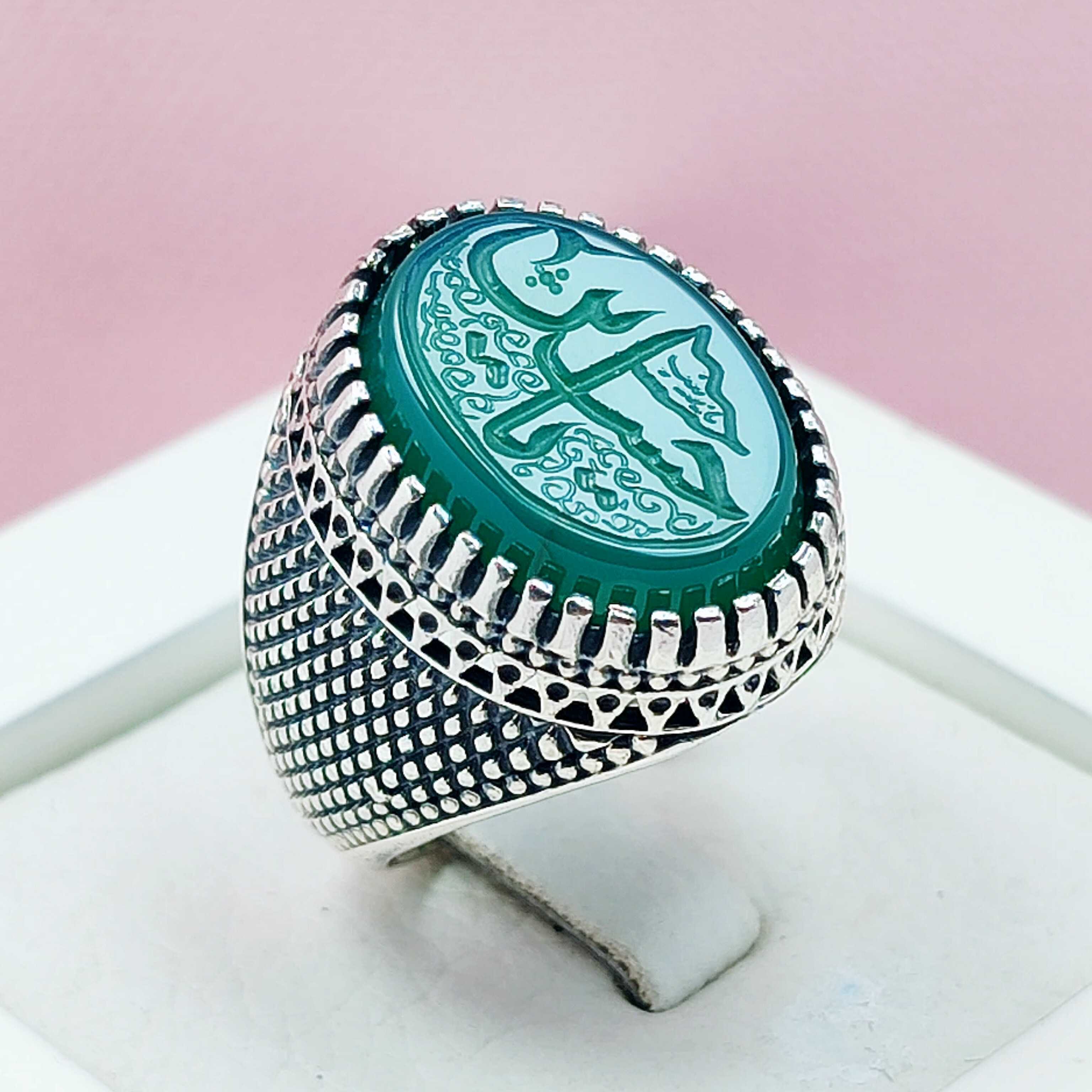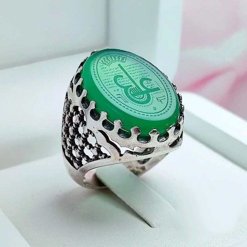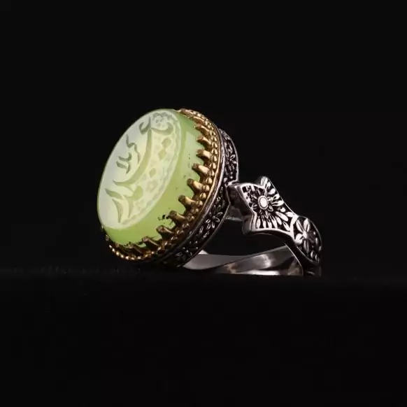 انگشتر یس مردانه عقیق سبز حکاکی لیزر