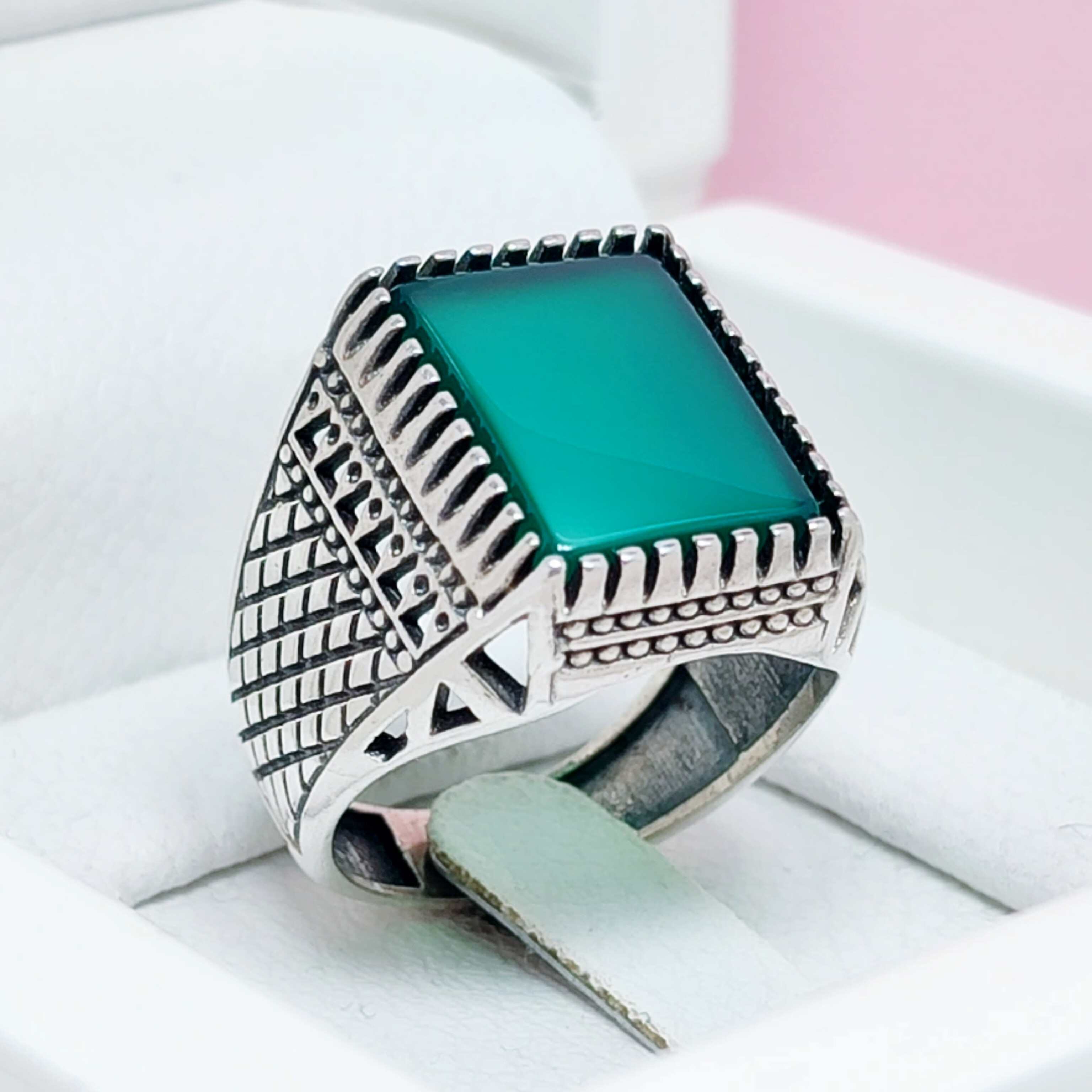 انگشتر مردونه عقیق سبز تراش دار