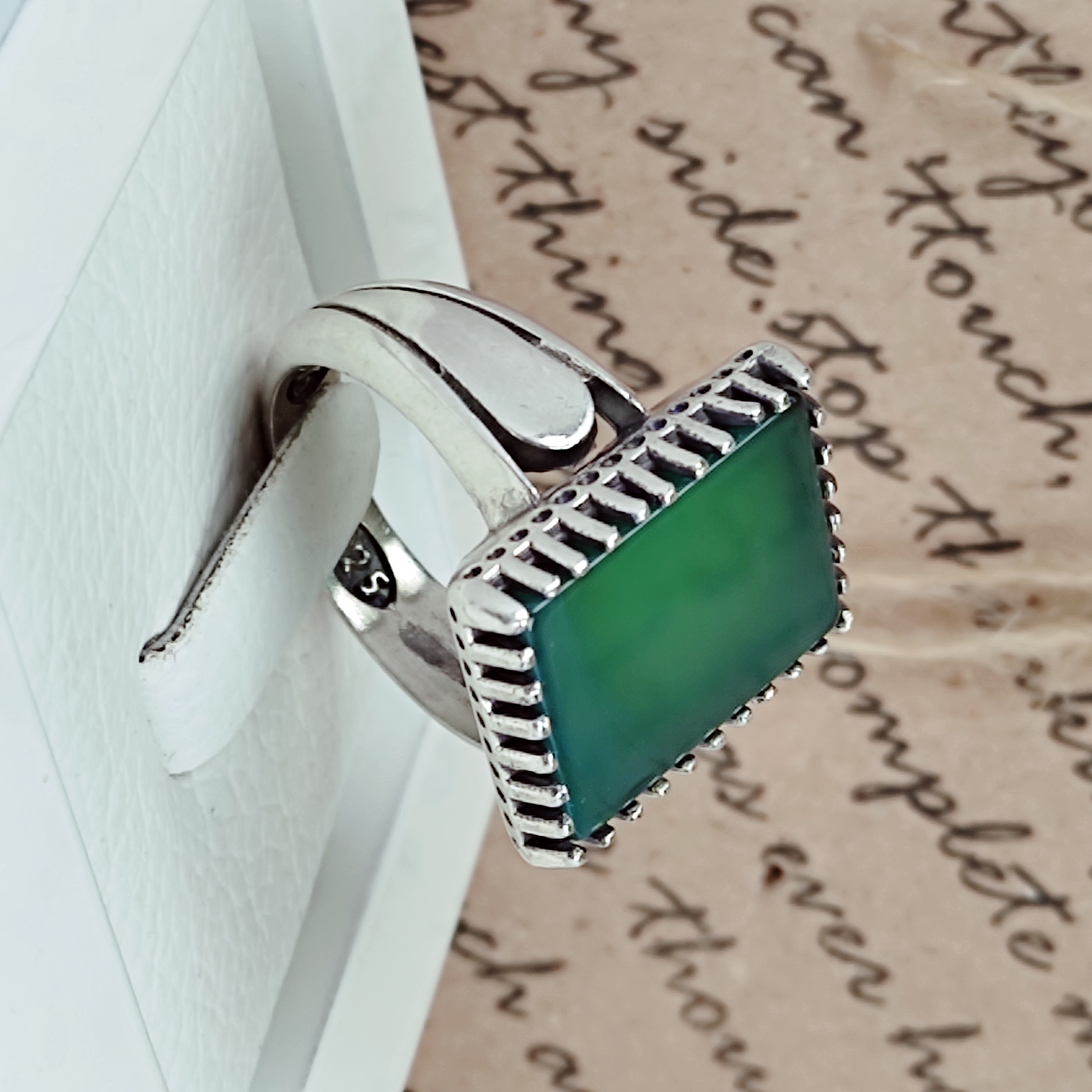 انگشتر مردانه نقره عقیق سبز چهار گوش