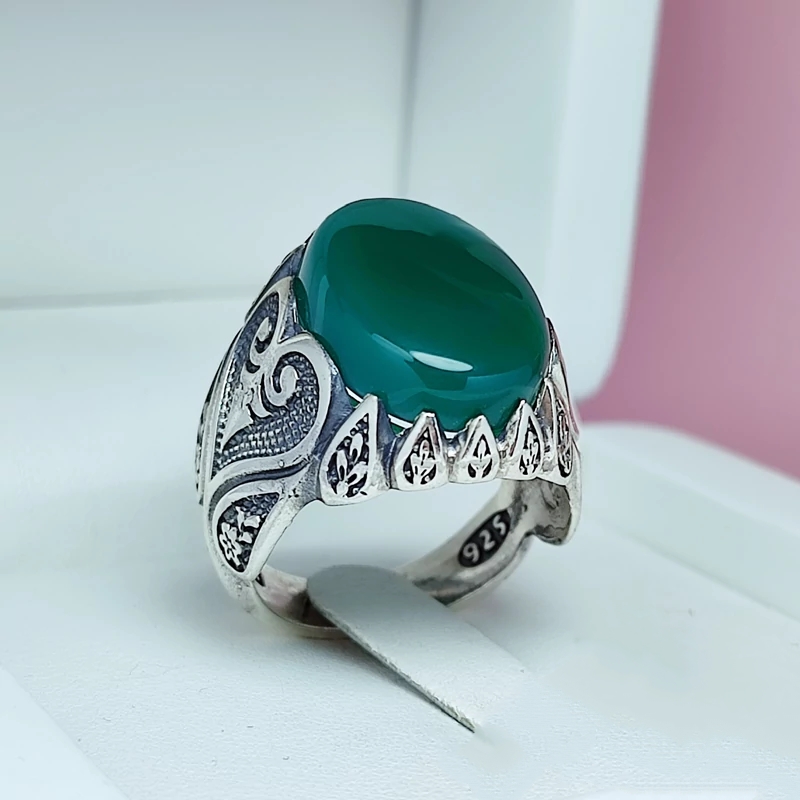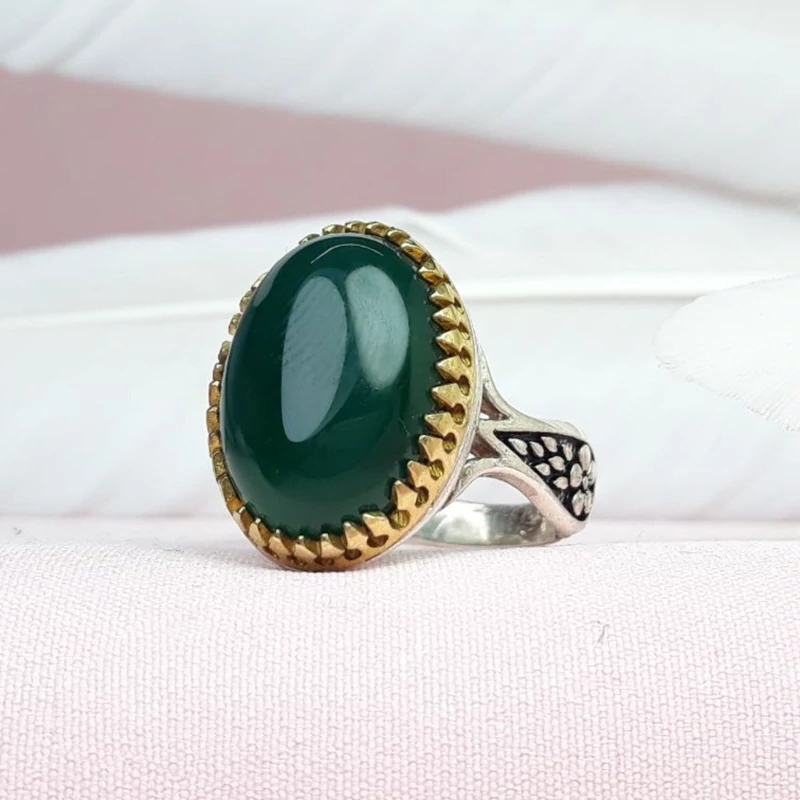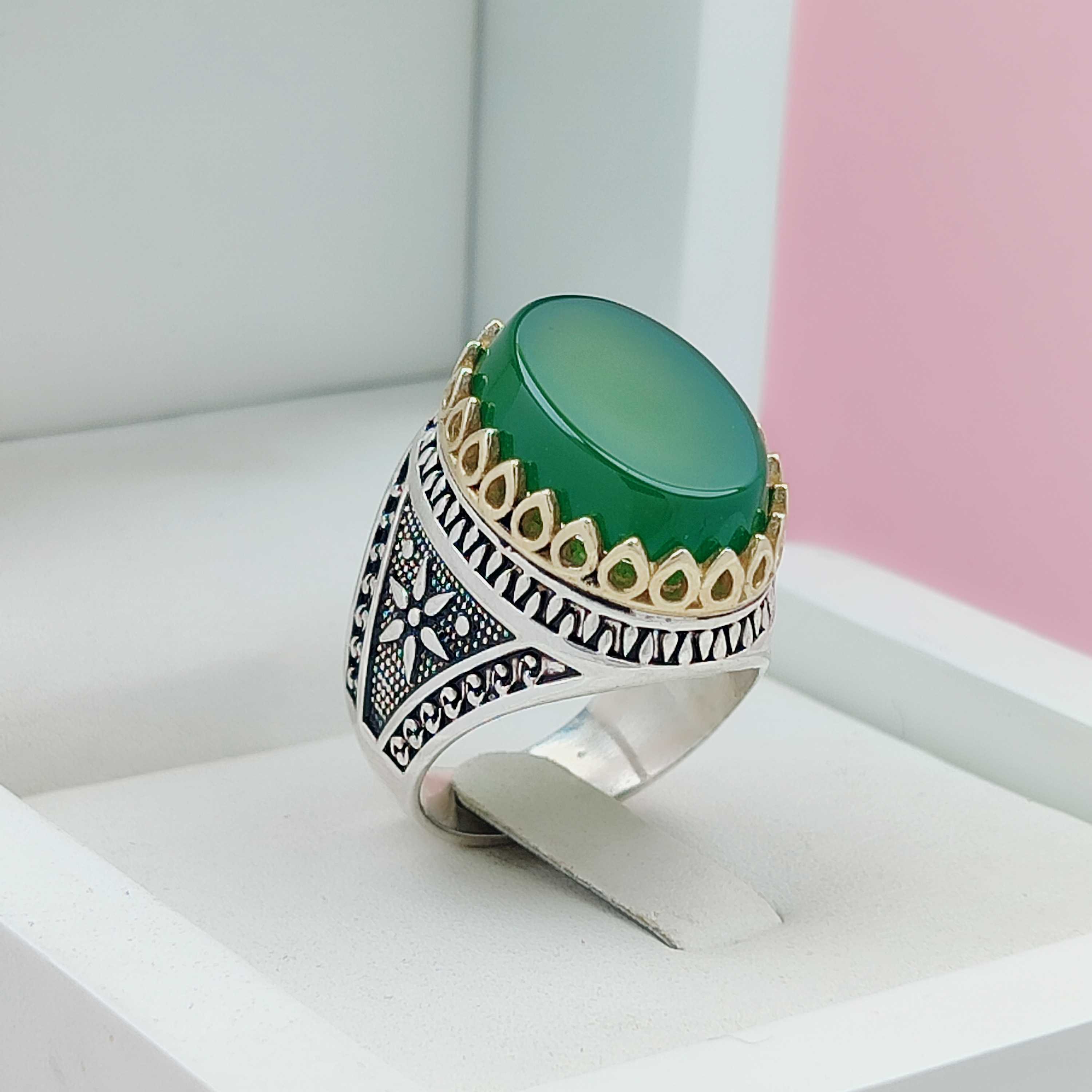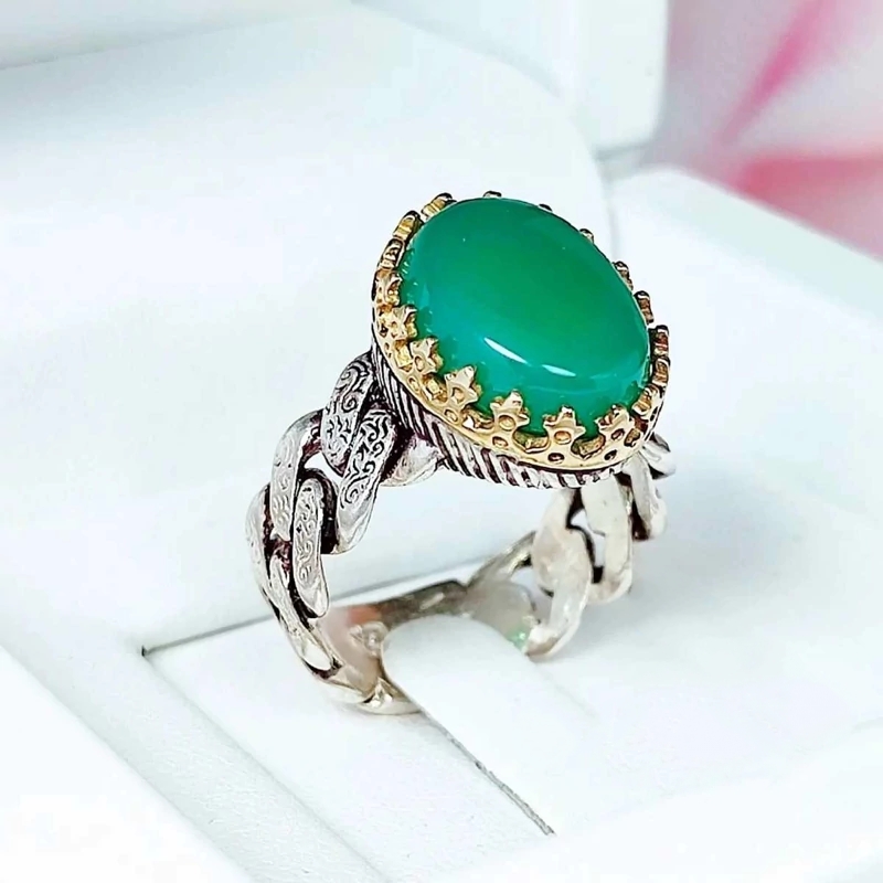 انگشتر عقیق سبز مردانه