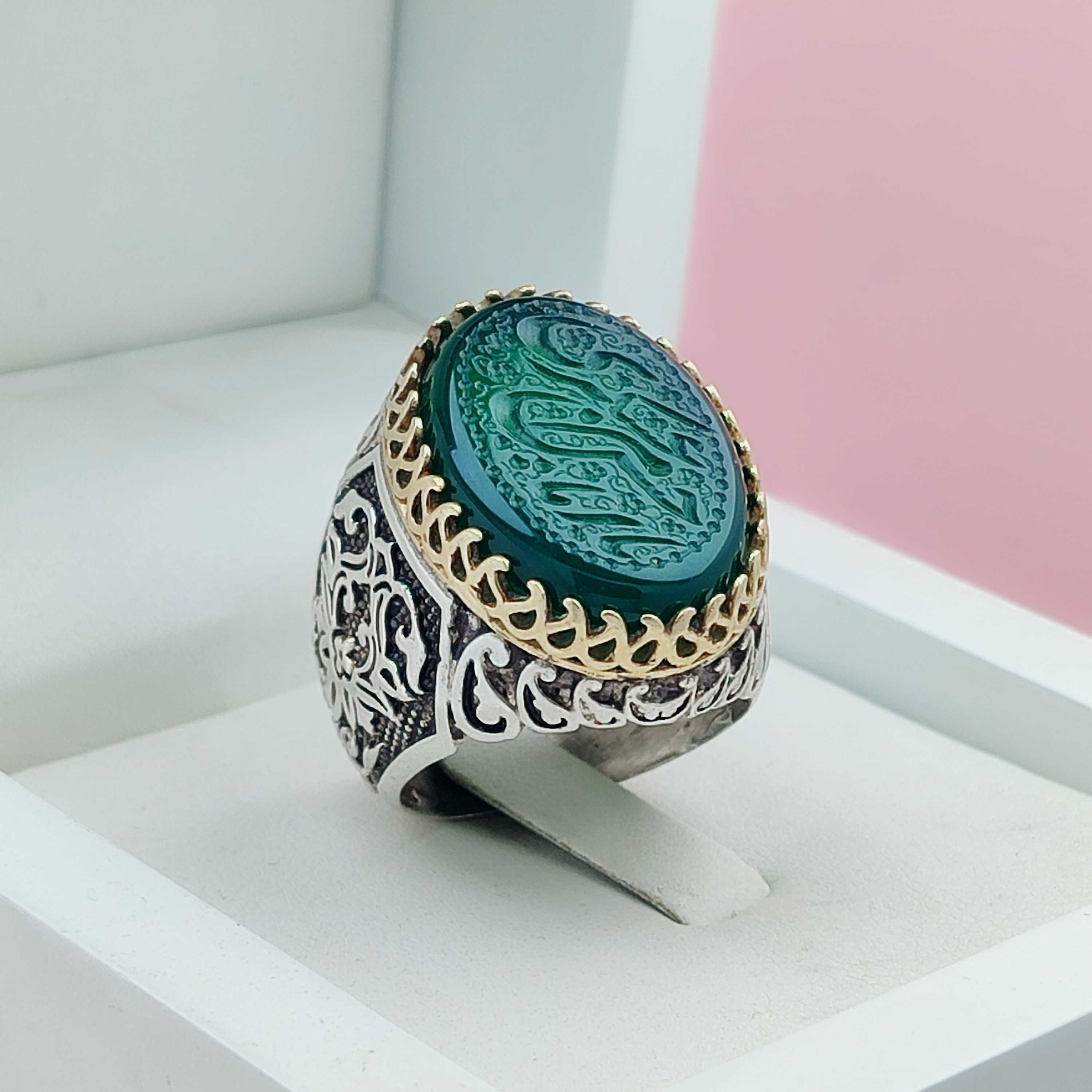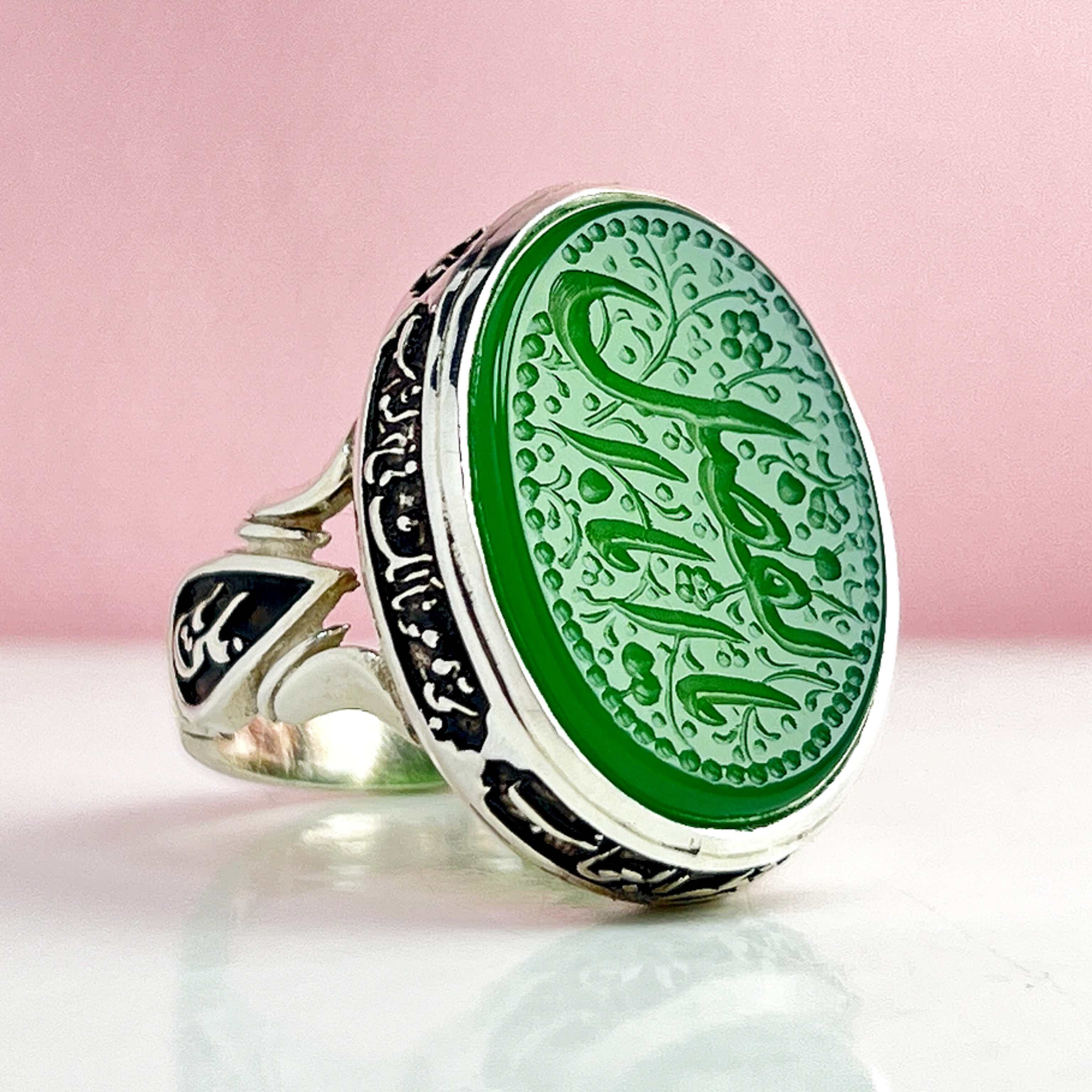 حکاکی یاحسین انگشتر مردانه نقره عقیق سبز