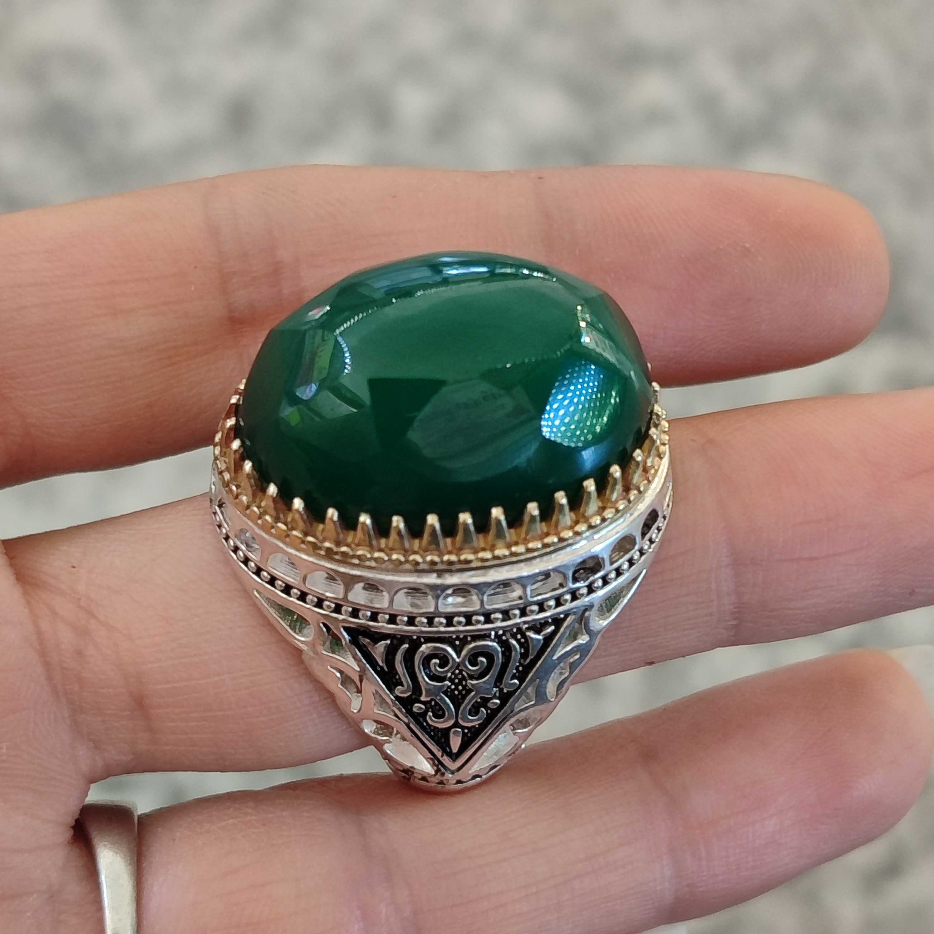 انگشتر سبز نقره عقیق سبز اصل