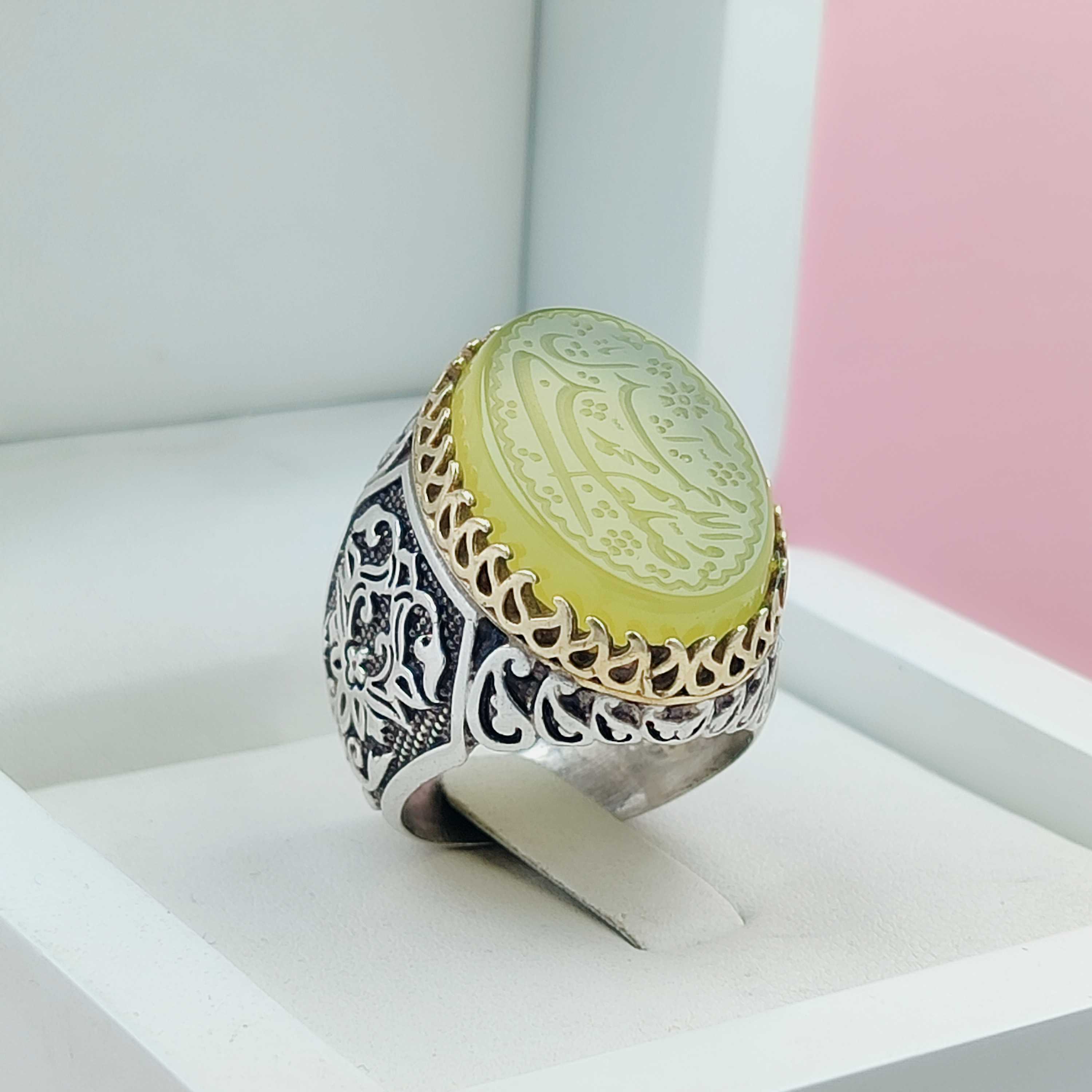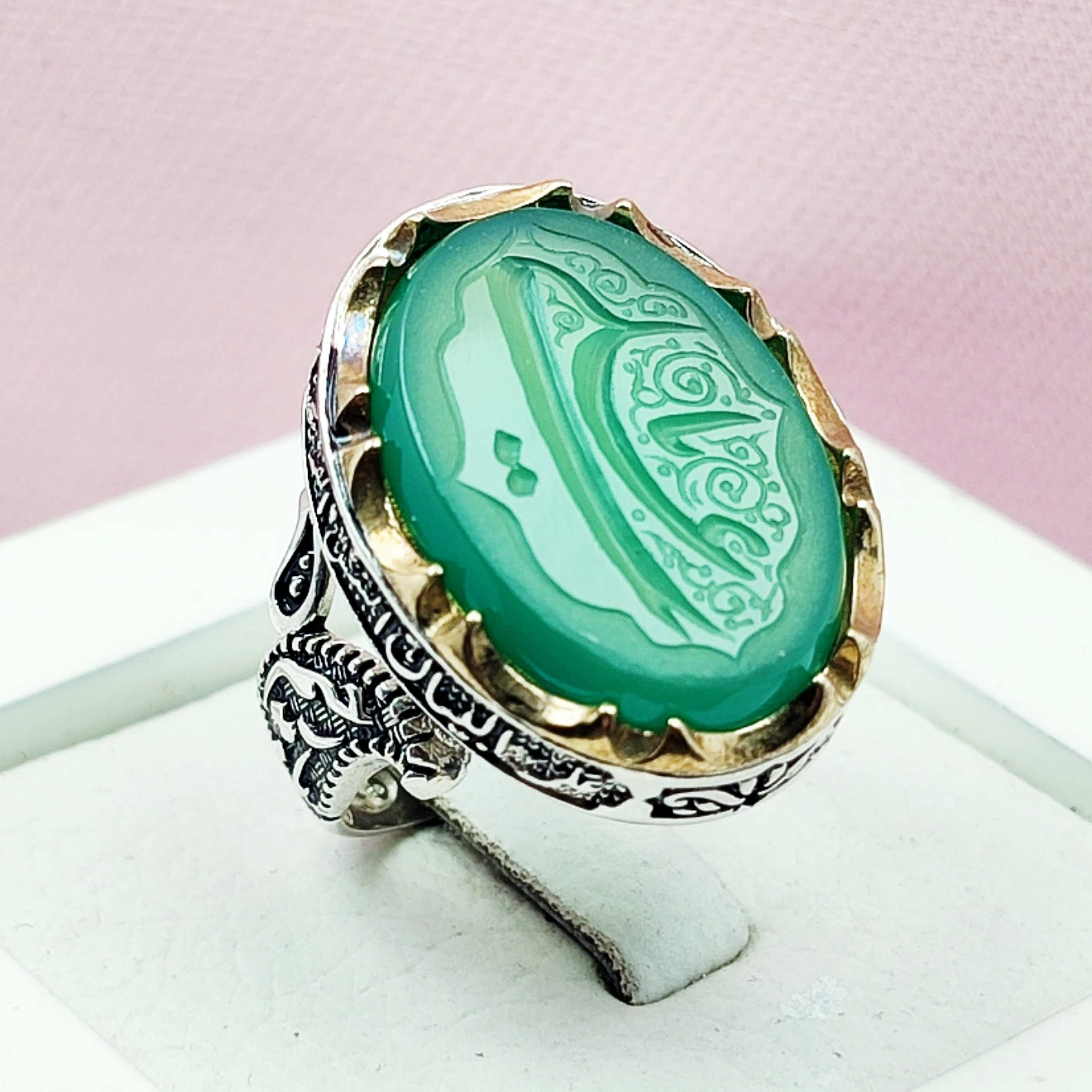 انگشتر مذهبی یاعلی یازهرا مردانه عقیق سبز خوشرنگ