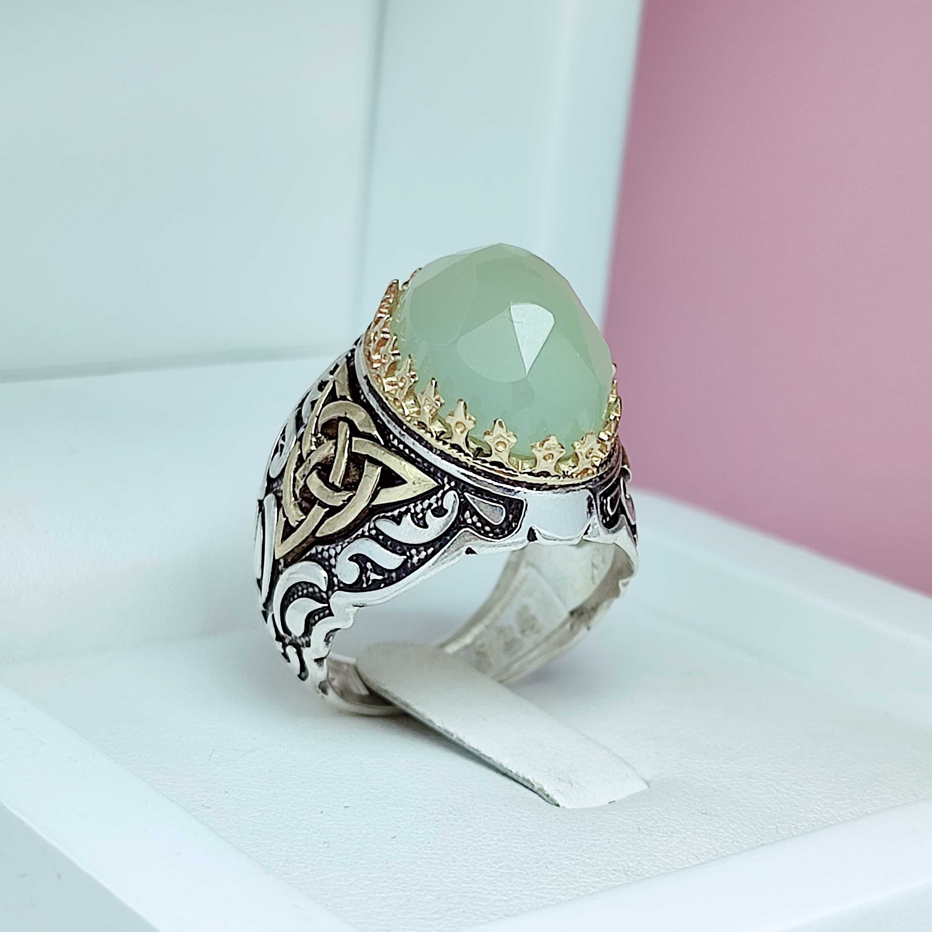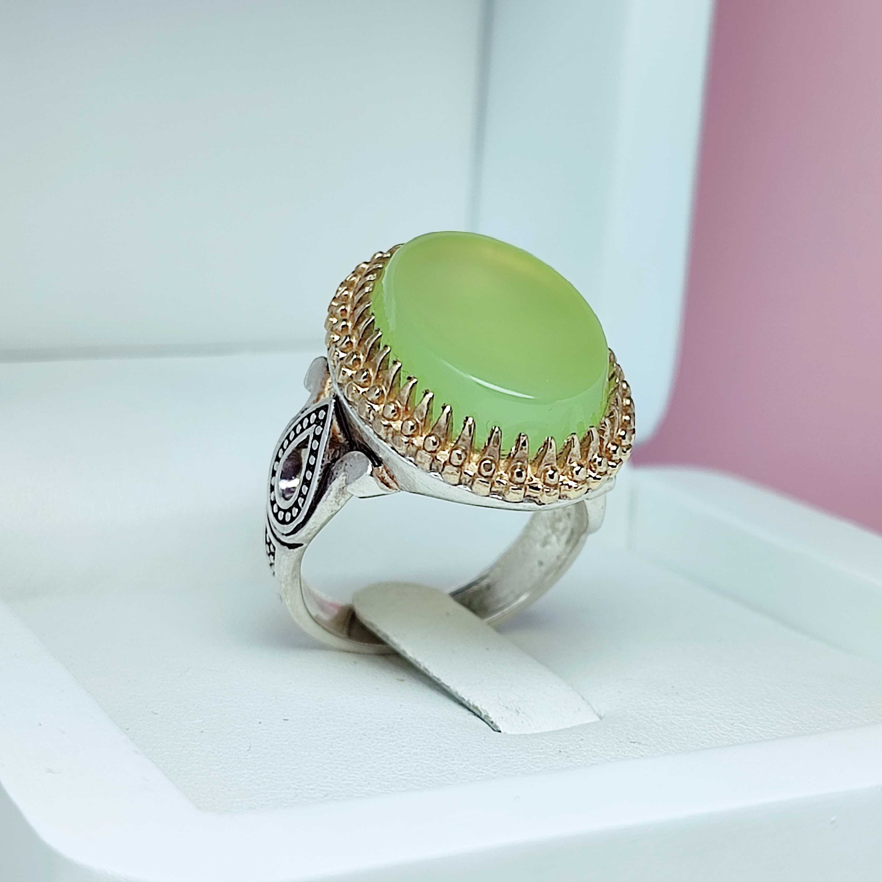 انگشتر خاص مردانه عقیق سبز کاهویی خوش رنگ