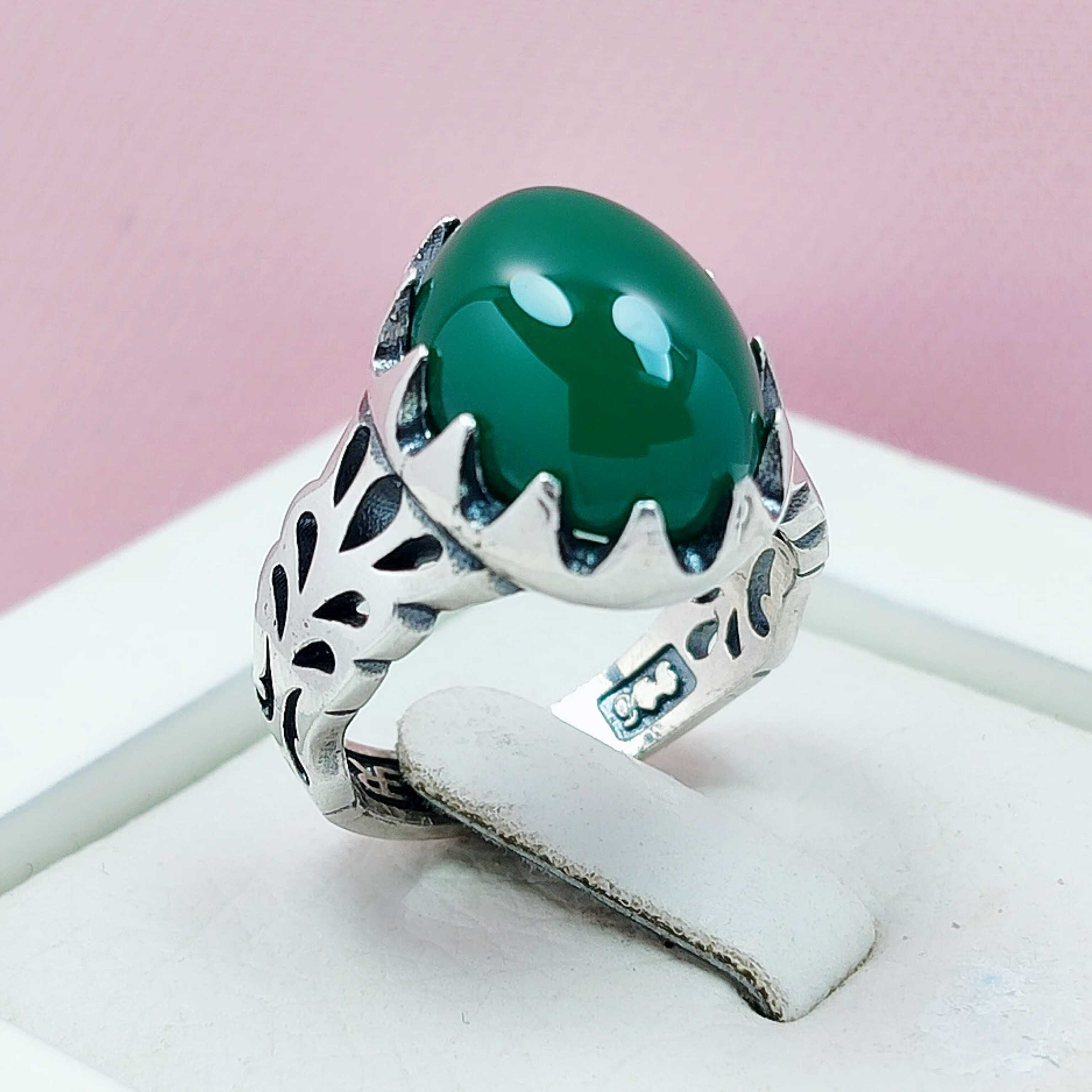 انگشتر خاص مردانه عقیق سبز (کد 1192)