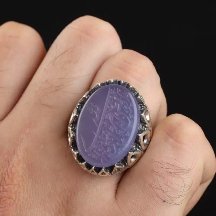 انگشتر نقره مردانه عقیق کبود اصل خطی با نقش و افوض امری الی الله