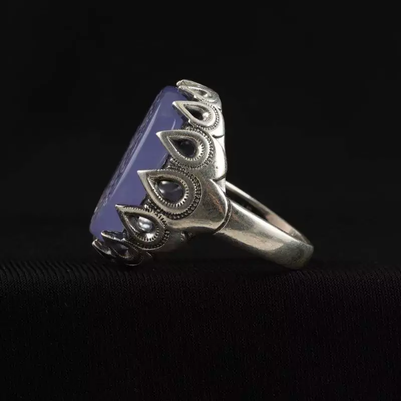 انگشتر نقره مردانه عقیق کبود اصل خطی با نقش و افوض امری الی الله