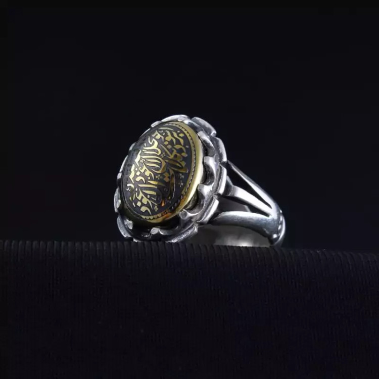 انگشتر نقره مردانه حدید هفت جلاله روکش برنجی اصل ( انگشتر حدید )