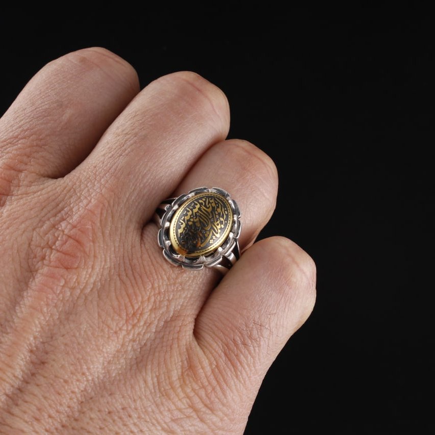 انگشتر نقره مردانه حدید هفت جلاله روکش برنجی اصل ( انگشتر حدید )