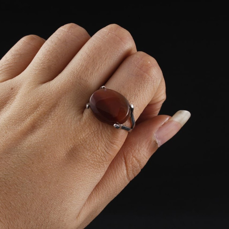 انگشتر نقره زنانه عقیق یمنی رکاب چهارچنگ اصل ( انگشتر زنانه )