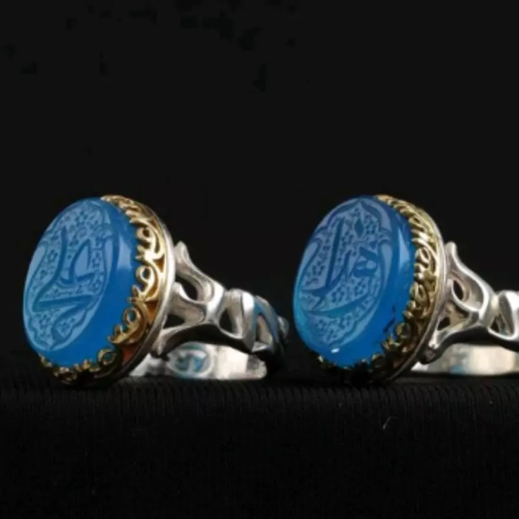 انگشتر نقره مردانه عقیق آبی رکاب یا علی