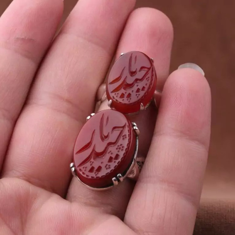 انگشترهای ست عقیق سرخ نقش یا حیدر اصل ( انگشتر ست )