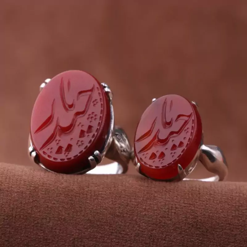 انگشترهای ست عقیق سرخ نقش یا حیدر اصل ( انگشتر ست )