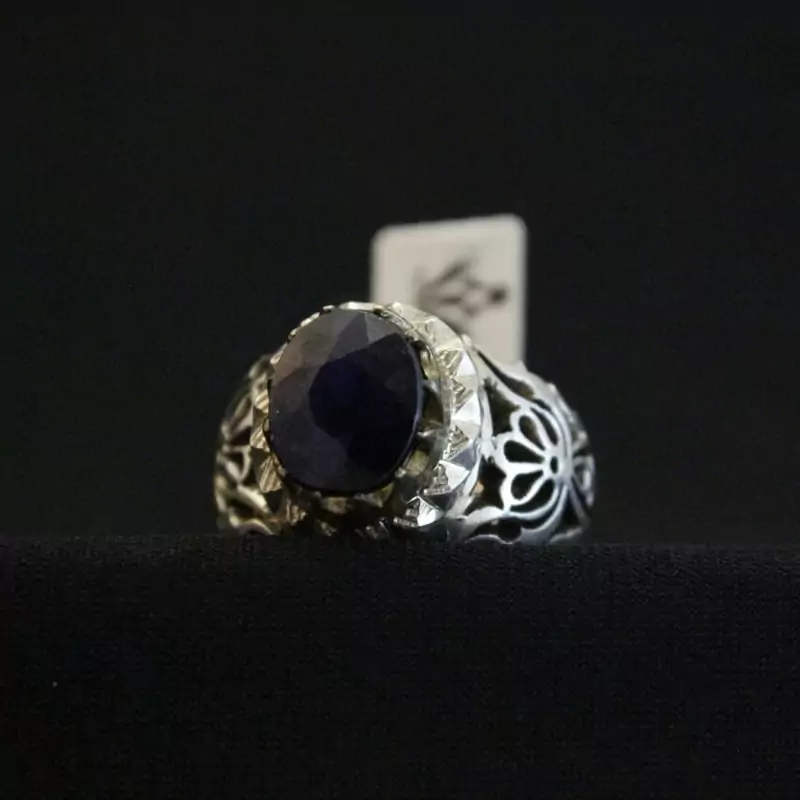 انگشتر یاقوت کبود دستساز تراش زیبای اصل ( انگشتر مردانه )