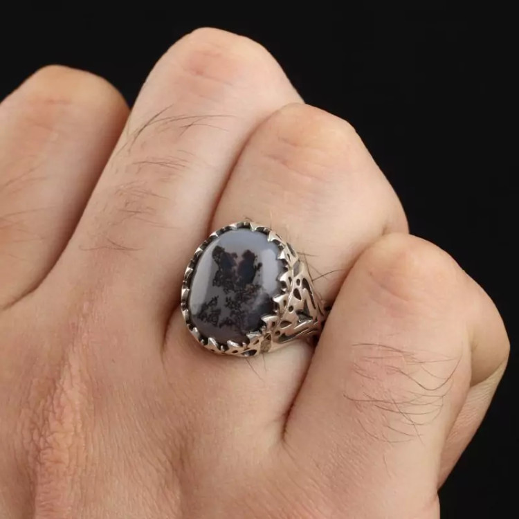 انگشتر نقره مردانه عقیق شجر اصل قائنات