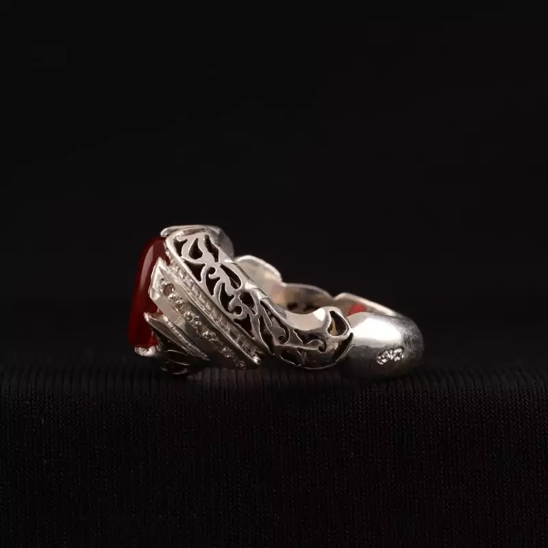 انگشتر نقره مردانه عقیق سرخ یمنی دستساز برلیان کاری شده اصل
