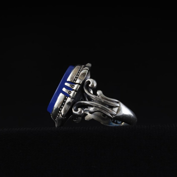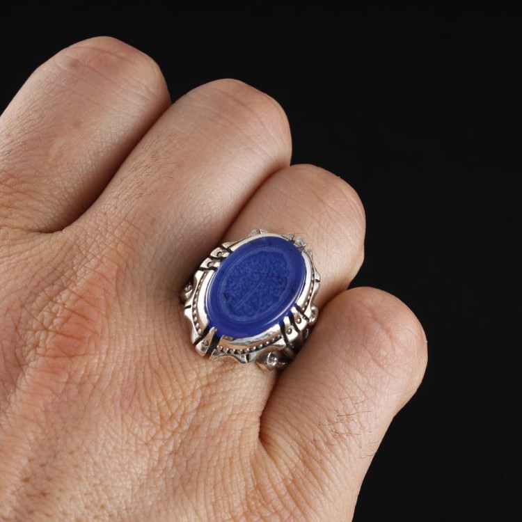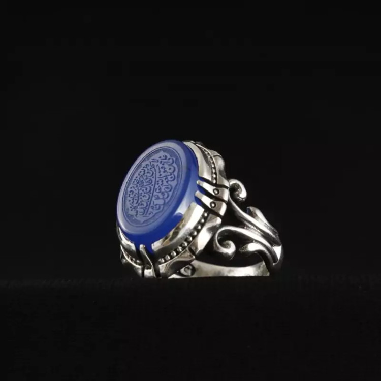 انگشتر نقره مردانه عقیق آبی نقش من یتق الله اصل ( انگشتر مردانه )