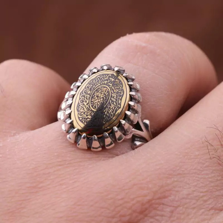 انگشتر حدید روکش برنجی نقش آیت الکرسی مردانه اصل ( انگشتر مردانه )