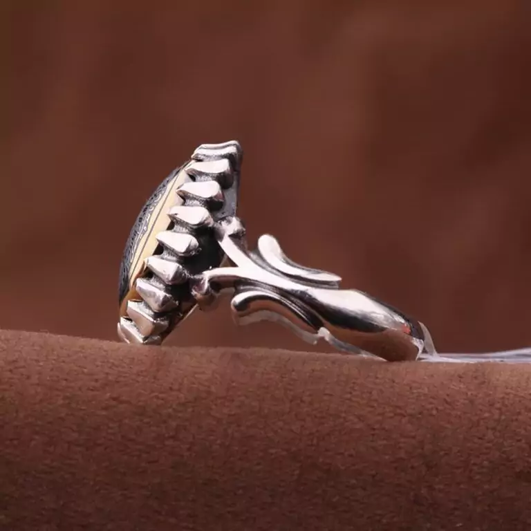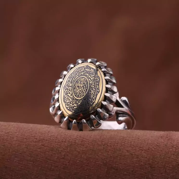انگشتر حدید روکش برنجی نقش آیت الکرسی مردانه اصل ( انگشتر مردانه )