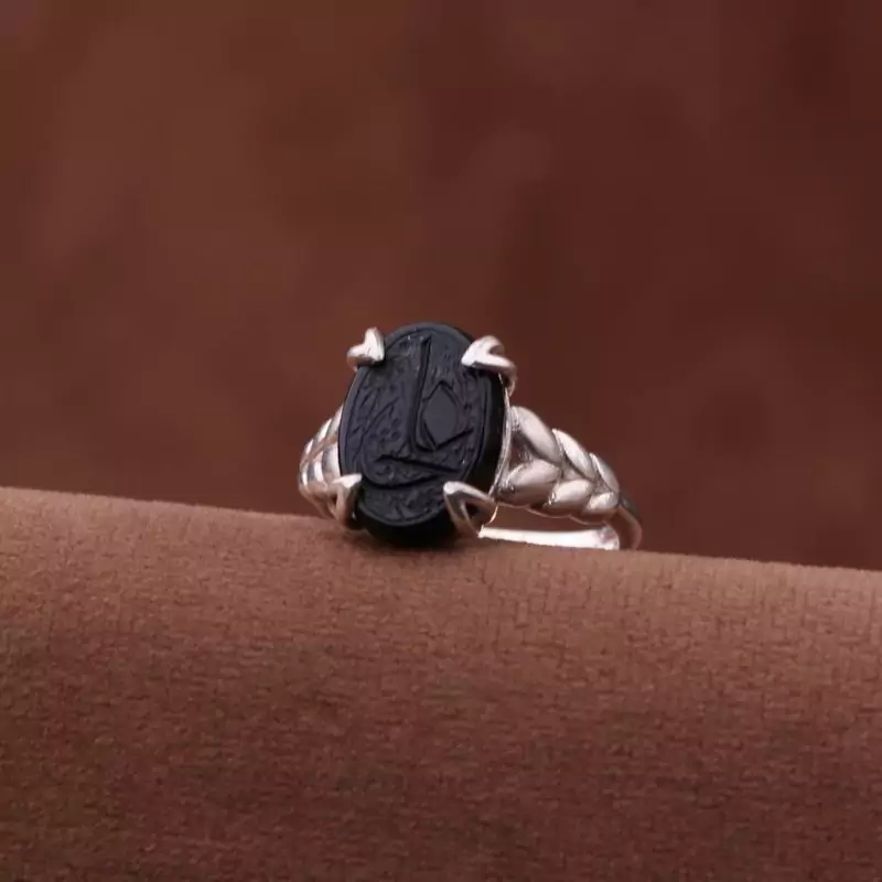 انگشتر عقیق مشکی نقش علی معلی اصل ( انگشتر زنانه )