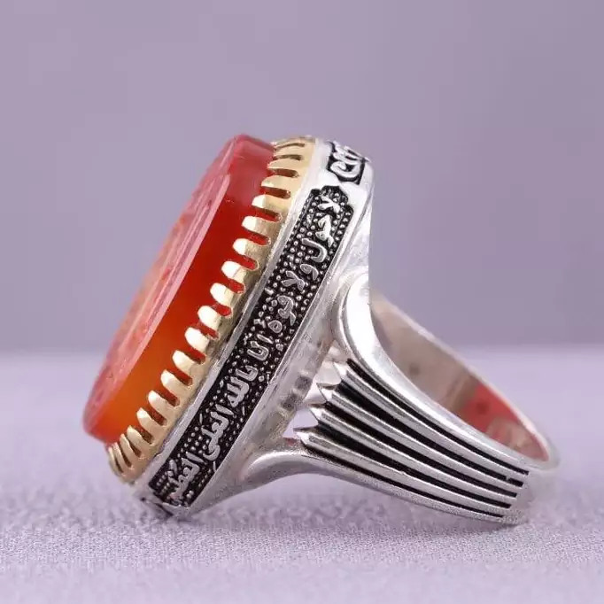 رکاب از جنس نقره ی 925 عیار هست و نگین عقیق اصل دو رنگ هست ✅