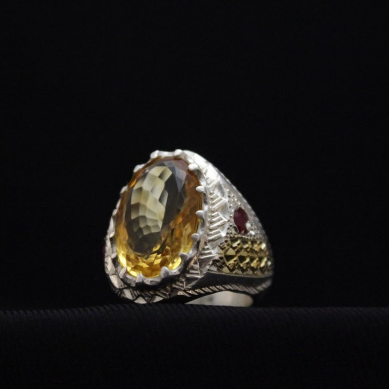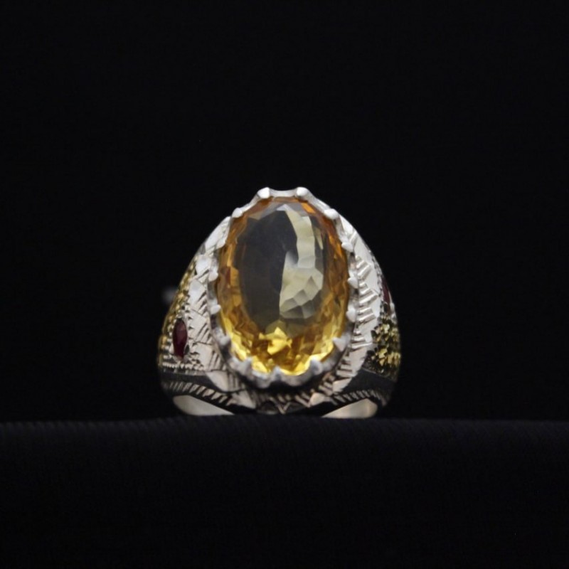 انگشتر سیترین دستساز رکاب کناربرنجی شناسنامه دار اصل ( انگشتر مردانه )