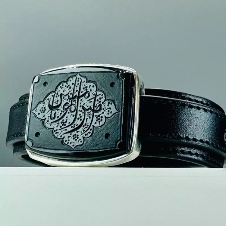 نگین دستبند عقیق مشکی اصل با نقش یا امیرالمومنین است که هم رنگ و هم نقش نگین قابل تغییر هست به سلیقه ی شما.