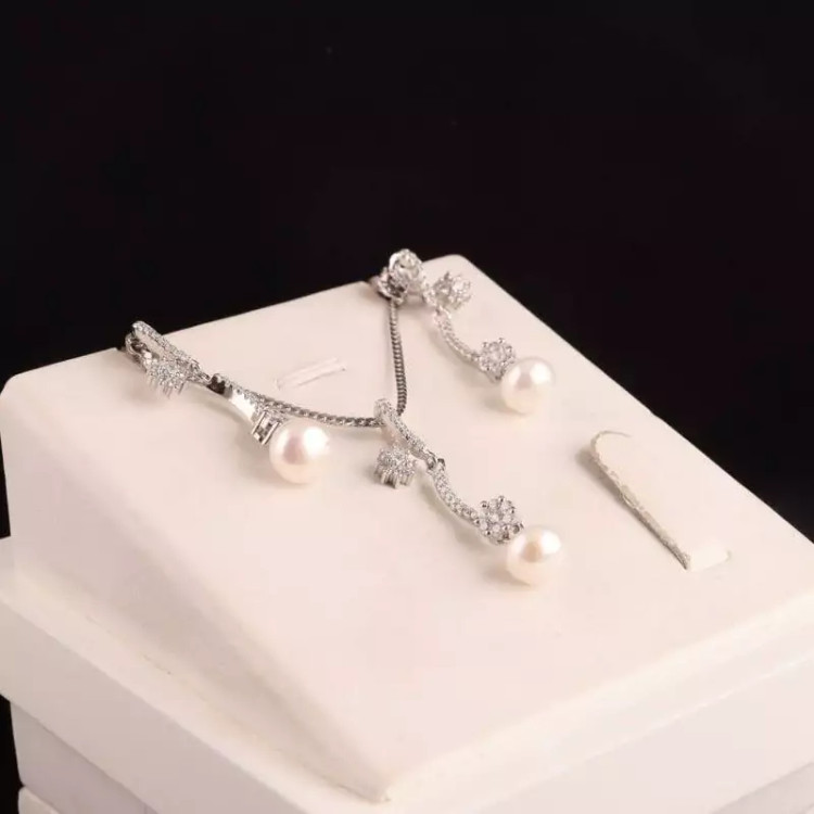 نیم ست نقره زنانه مرواریدی روکش رادیوم