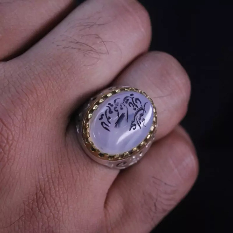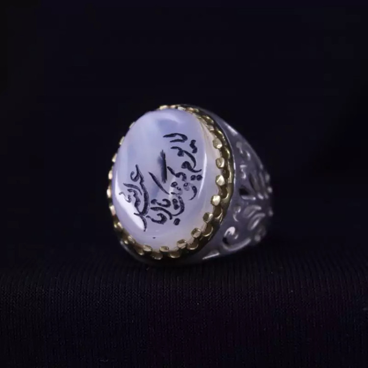 انگشتر عقیق شجر رکاب تاج برنجی نقش لایوم ... یااباعبدالله اصل ( انگشتر مردانه )