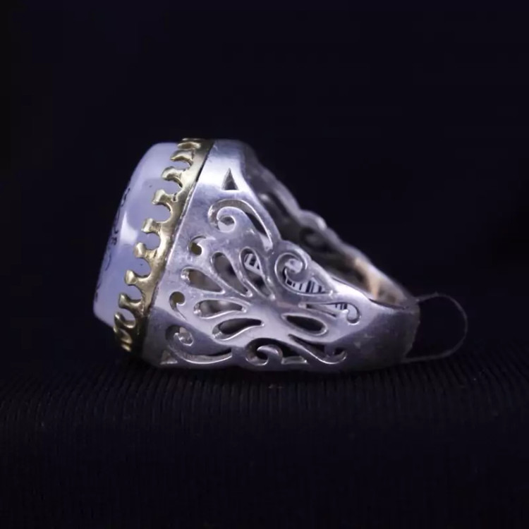 انگشتر عقیق شجر رکاب تاج برنجی منقش معدنی اصل ( انگشتر مردانه )