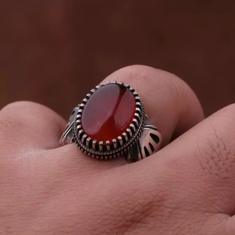 انگشتر عقیق یمنی خوش رنگ معدنی اصل ( انگشتر مردانه )