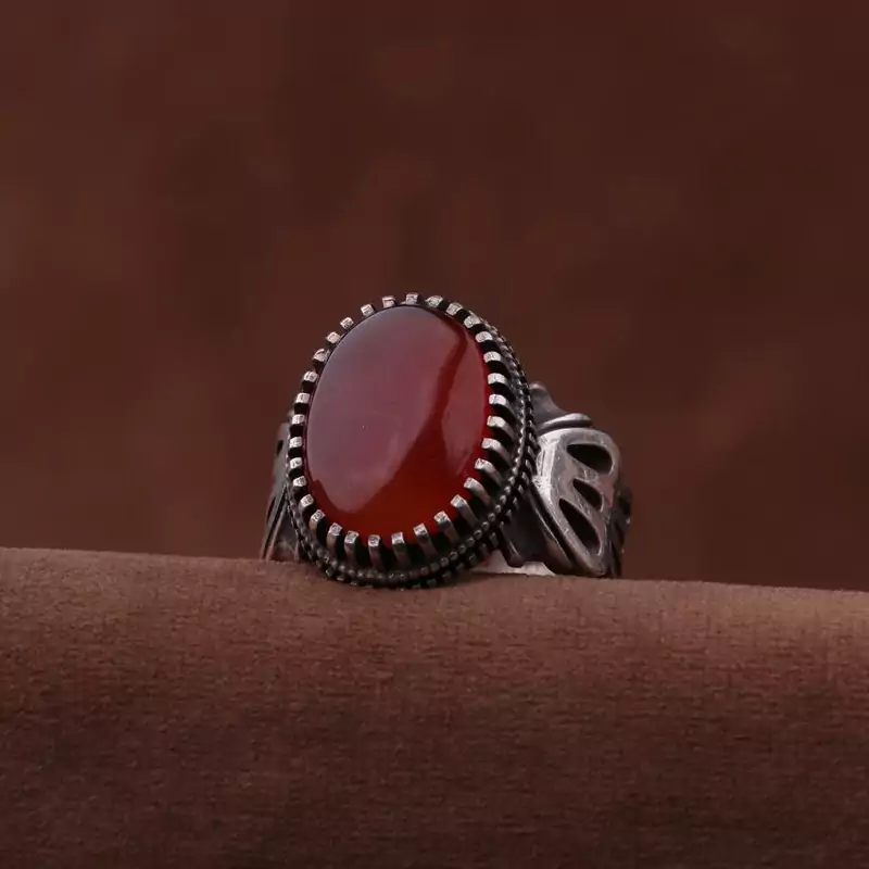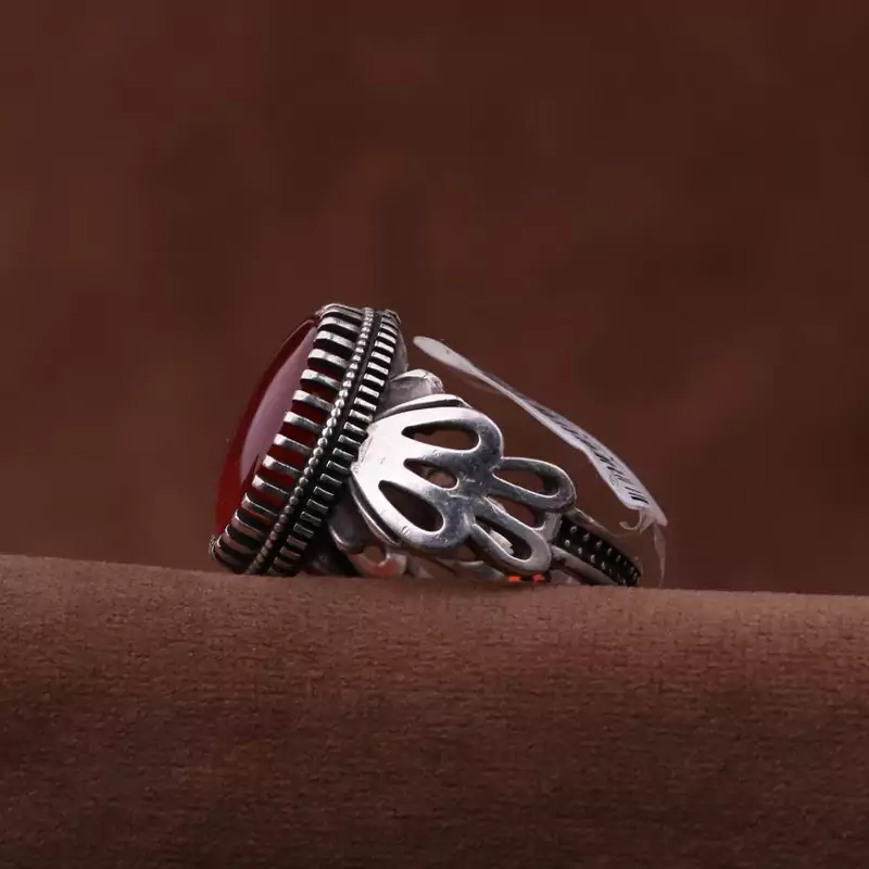 انگشتر عقیق یمنی خوش رنگ معدنی اصل ( انگشتر مردانه )