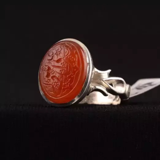 انگشتر نقره مردانه عقیق سرخ یمنی دستساز پشت بسته نقش علی ولی الله اصل ( انگشتر دستساز )