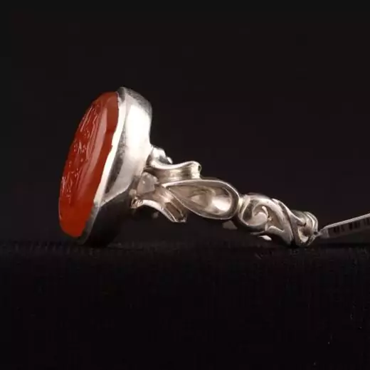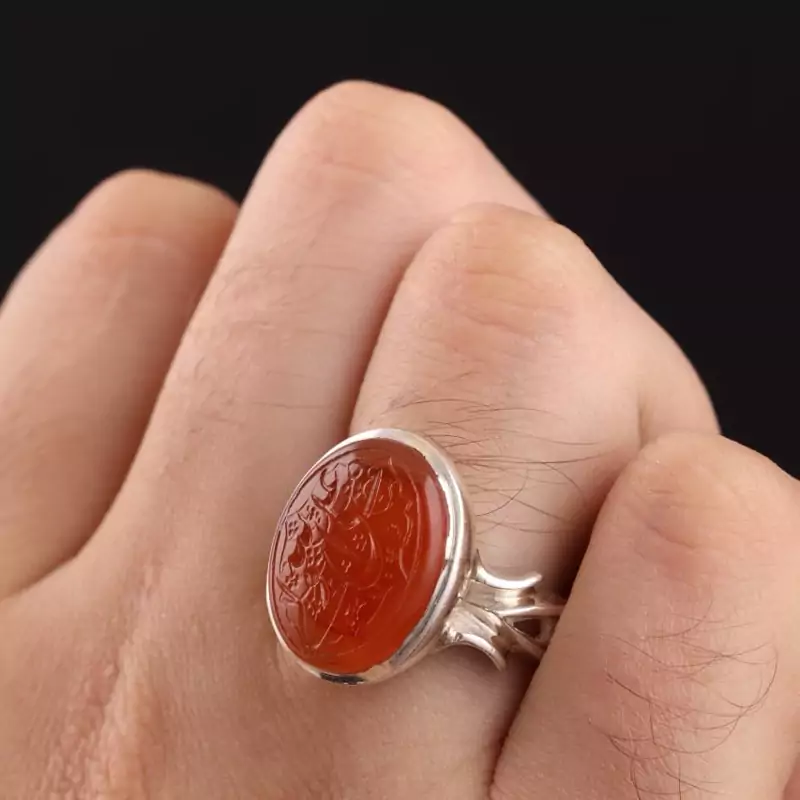 انگشتر نقره مردانه عقیق سرخ یمنی دستساز پشت بسته نقش علی ولی الله اصل ( انگشتر دستساز )