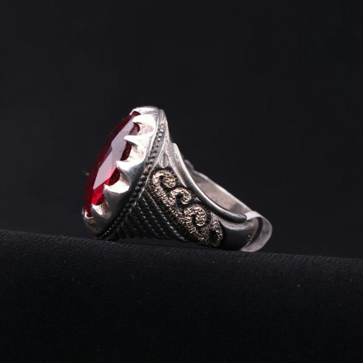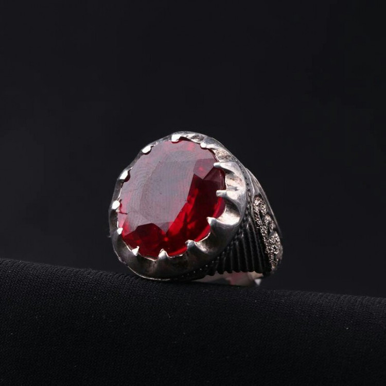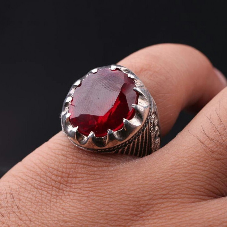 انگشتر یاقوت سرخ شمش صنعتی تراش الماسی ( انگشتر مردانه )