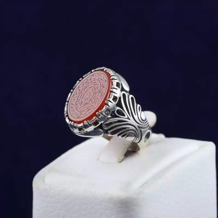 انگشتر نقره مردانه عقیق سرخ نقش یامفتح الابواب اصل