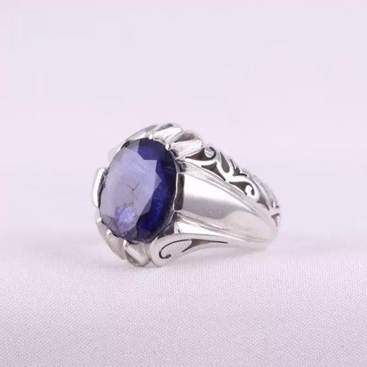 انگشتر مردانه یاقوت کبود اصل دستساز روکش رادیوم