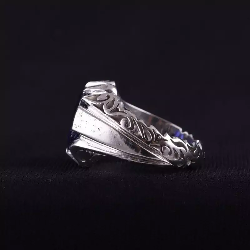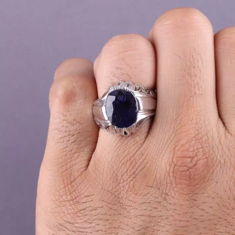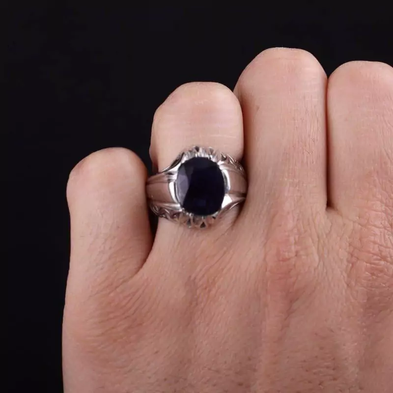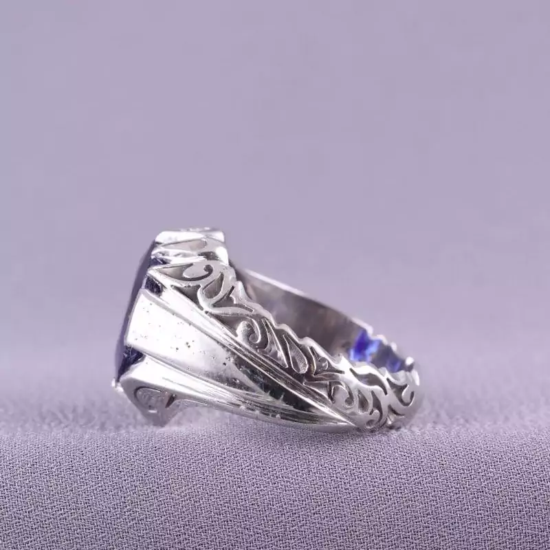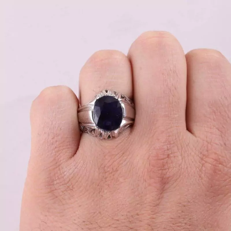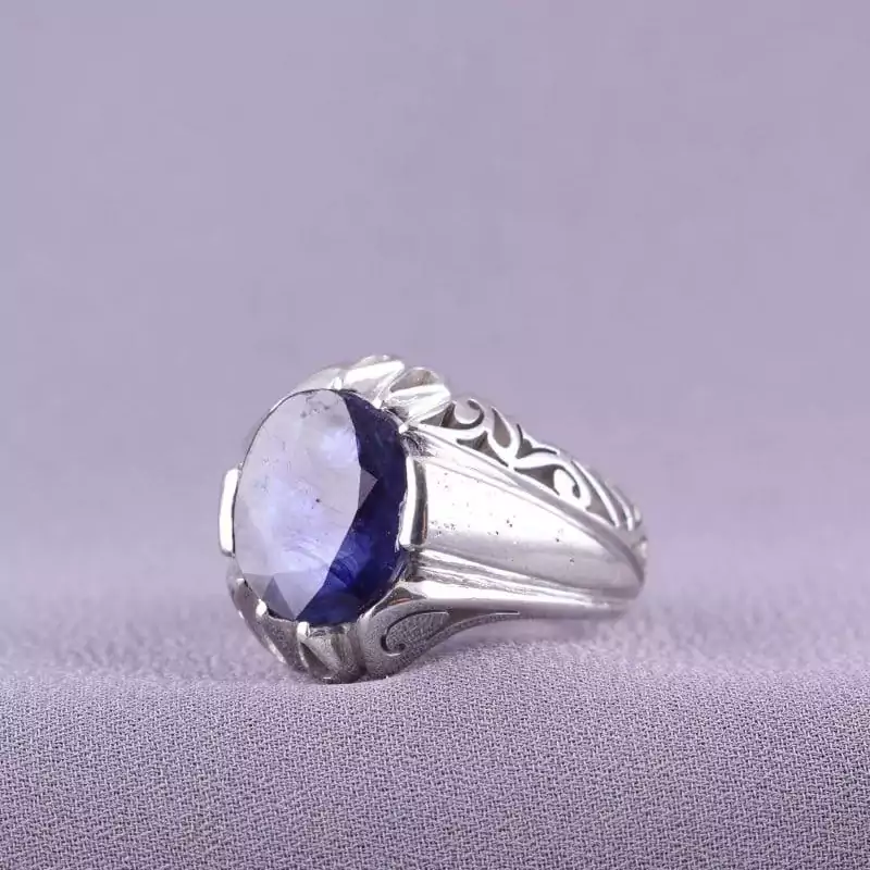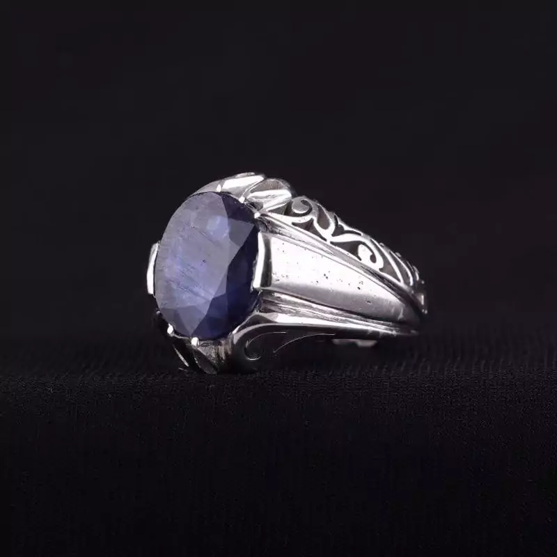 انگشتر مردانه یاقوت کبود اصل دستساز روکش رادیوم