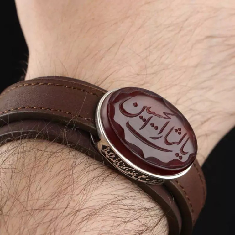 نگین عقیق سرخ خراسانی اصل با نقش خط گود یا لثارات الحسین می باشد.