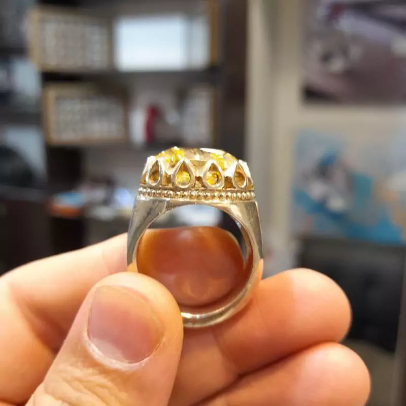 انگشتر دستساز نقره قم نگین زیرکن بسیار زیبا و فاخر