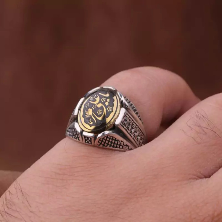 انگشتر حدید روکش برنجی نقش یاعلی اصل ( انگشتر مردانه )