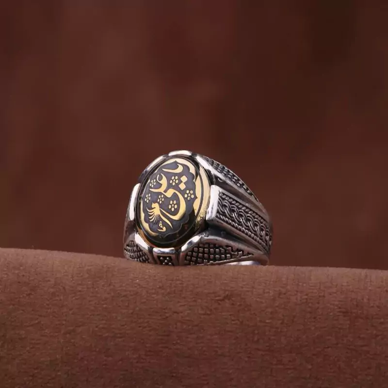 انگشتر حدید روکش برنجی نقش یاعلی اصل ( انگشتر مردانه )