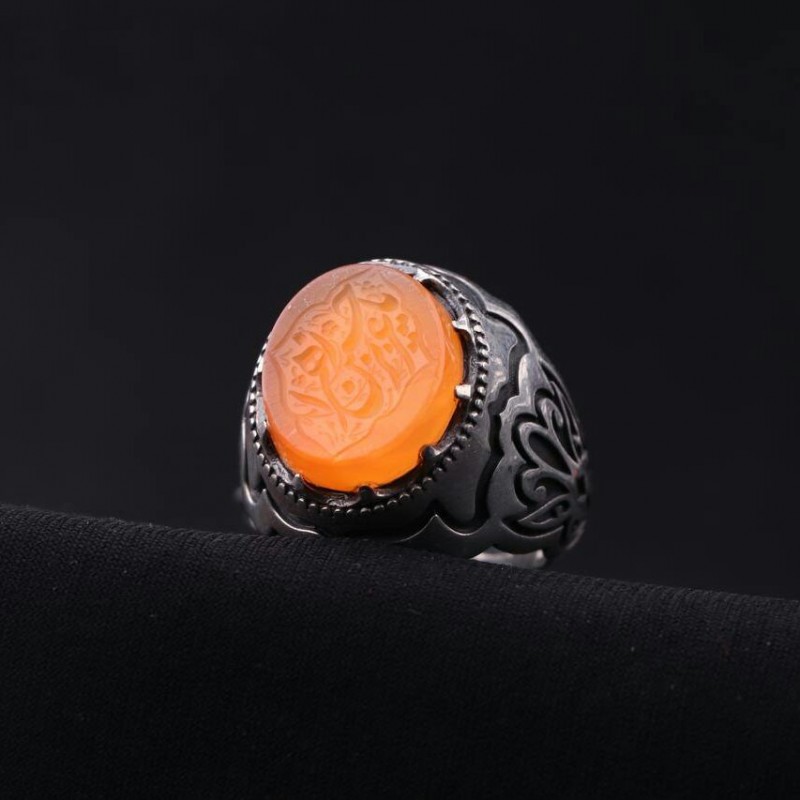 انگشتر عقیق یمنی یاحسین عزیز زهرا اصل ( انگشتر مردانه )